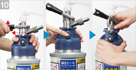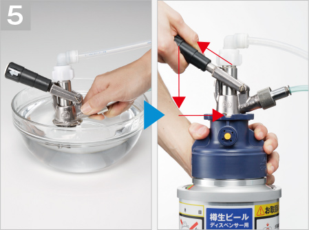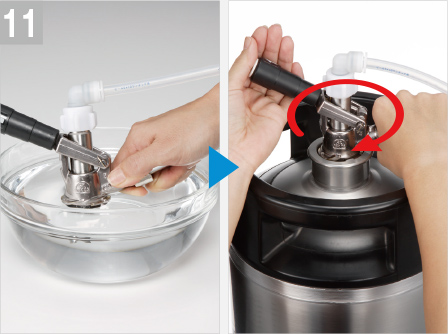 ⑪ヘッドを水ですすいで、樽に取り付けます。