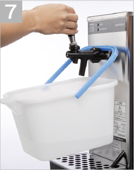 ⑤ヘッドを水ですすいでからセットし、レバーを下げます。
